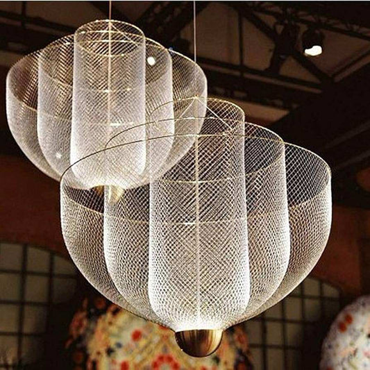 Hdc 450/600mm Modern Metal Iron Mesh 1 Light with 3 Layers Golden Finish Industrial Chandelier
