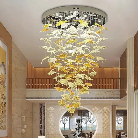 Hdc Modern Hotel Villa Decoration Custom Art Maple Leaf Glass Ceiling Lighting Fixture