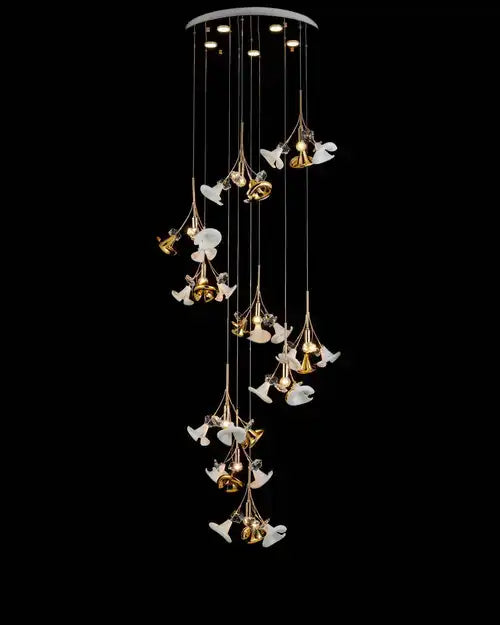 HDC Led 15 Lights Orchestrated Blooms Cascade Double Height Stair Chandelier