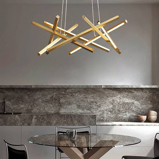 Hdc Modern Matte Gold Finish Geometric LED Pendant Chandelier Light for Living & Dining Areas