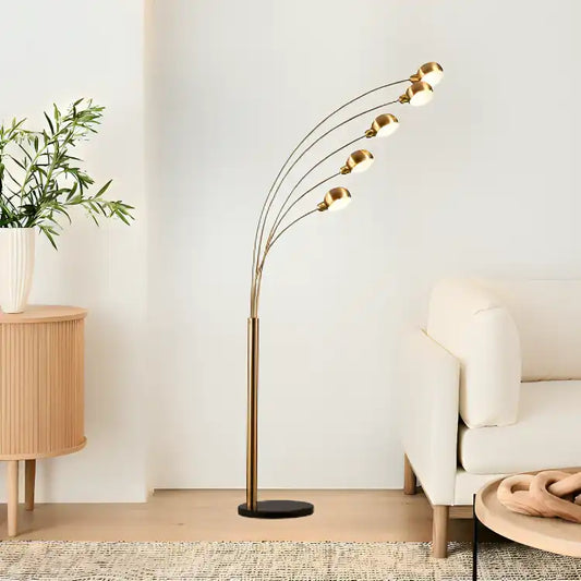 Hdc 5-Branch Metal Frame in Matte Gold Finish with Marble Base Floor Lamp