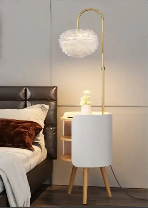 Hdc Feather Floor Lamp With Bedside Table Shelf Integrated Ins Wind Table Lamp