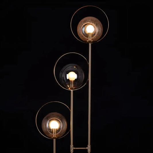 Hdc 3 Light Metal Amber And Smoke Glass Standing Floor Lamp