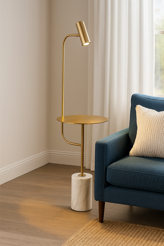 Hdc Modern Brass Lamp with Marble Base & Integrated Table Stylish Side Table Lamp for Living Room & Bedroom