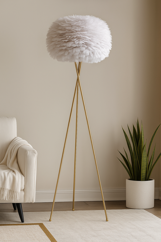 Hdc Nordic White Feather Floor Lamp Gold Iron Tripod Floor Lamps for Living Room
