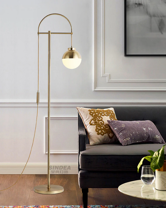 HDC Golden Electroplated Arch Standing Lamp Spherical Glass Lampshade Contemporary Floor Lamp for Reading, Bedroom and Living Room