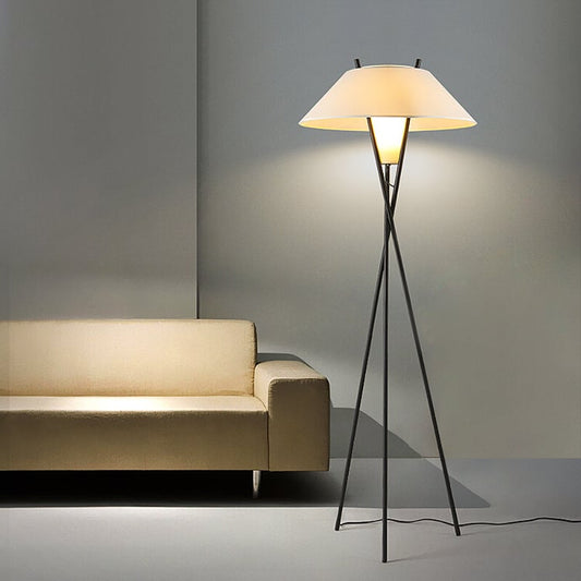 HDC Black Slim Stand And White Fabric Shade Living Room Creative Bedroom Tripod LED Vertical Floor Lamp