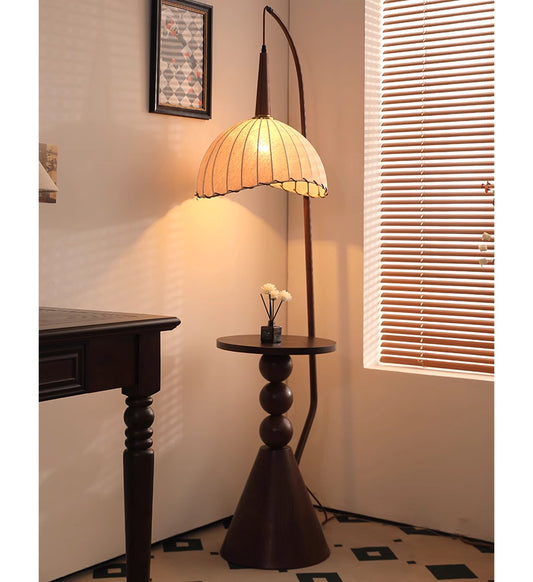 Hdc Elegant Arc Floor Lamp with Side Table & Vintage Fabric Shade Standing Lamp with Table for Living Room, Bedroom, Office