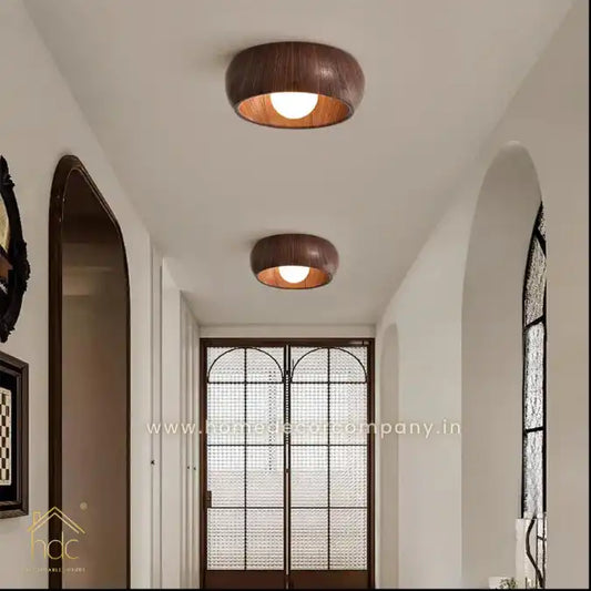 HDC Ceiling Wood Light, Metal Bowl Shaped Small Vintage Flush Mount Ceiling Light for Kitchen Bathroom Porch Entry Foyer