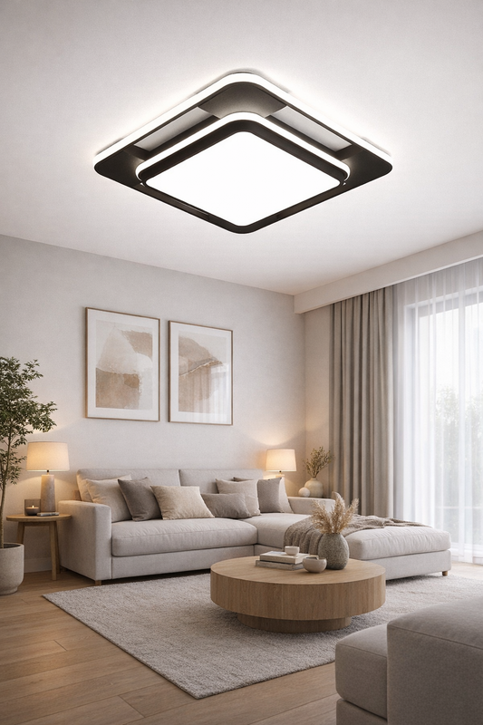 HDC Modern Black 470MM Square LED Ceiling Light for Bedroom, Living Room