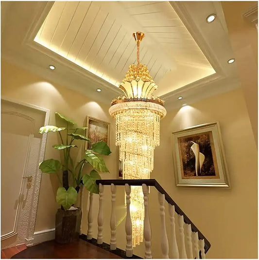 HDC Spiral High Ceiling Double Height Crystal Chandelier For Foyer Staircase/ Living Room