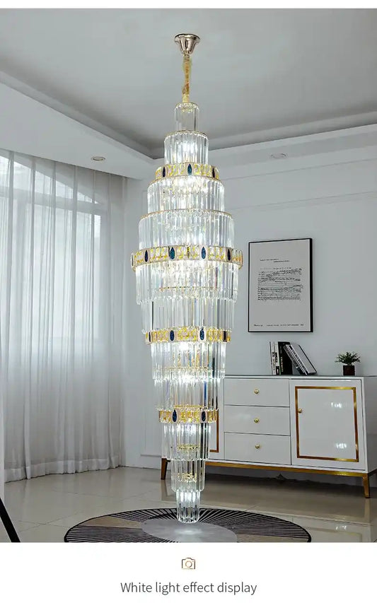 Hdc Duplex Building Spiral Staircase Crystal Long Double Height Chandelier