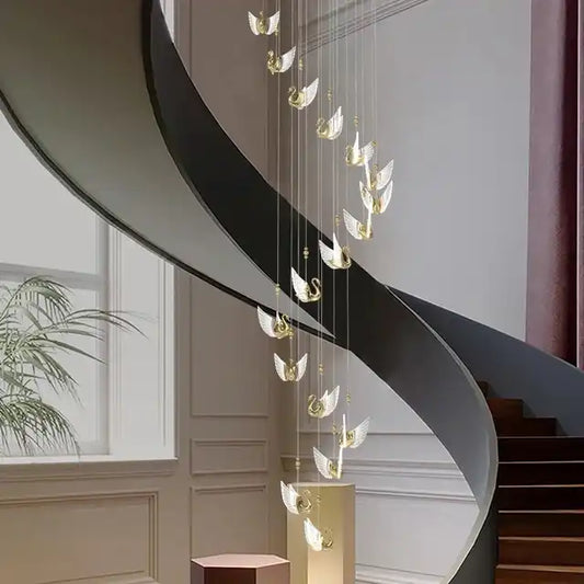 HDC Led Swan Double Height Stair Chandelier - Warm White