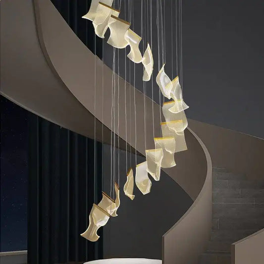 HDC Led Acrylic Gold Big Curvy Plate Double Height Stair Chandelier - Warm White