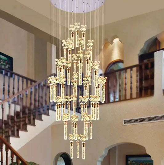 HDC 28-Light Hanging Multilevel Chandelier Gel with Flower Decor Double Height Stair Chandelier - Warm White