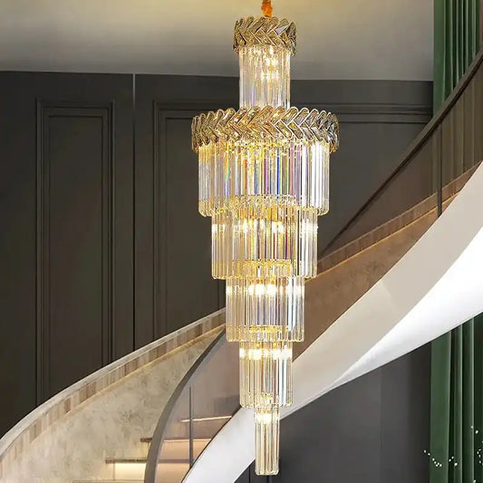 Hdc Stair Lamp Luxury Living Room Atmospheric Double Height Crystal Chandelier