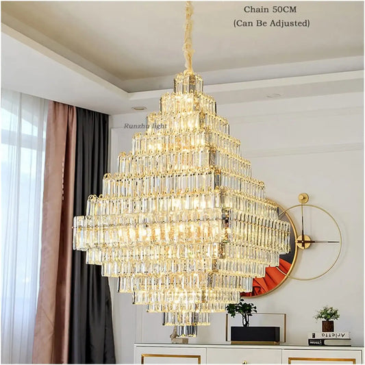 HDC LED Modern Crystal Chandeliers Lights Fixture American S-golden Double Height Luxury Chandelier