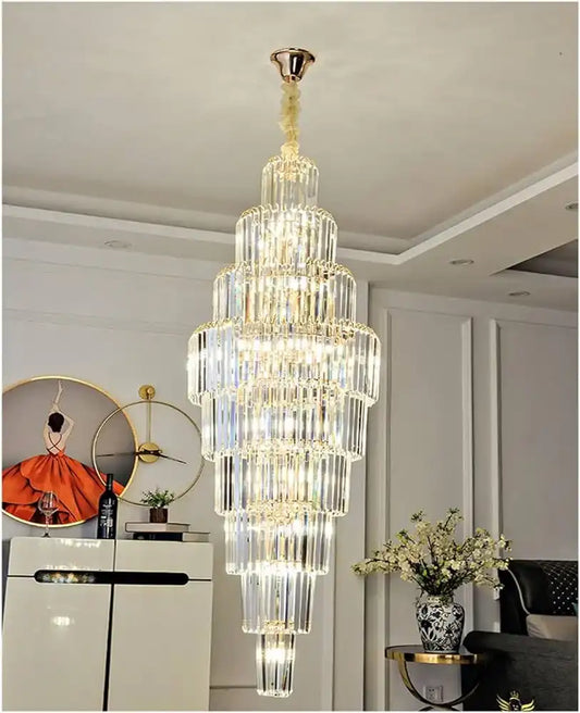 HDC Spiral High Ceiling Light Fixture Long Crystal Chandelier For Foyer Staircase/ Living Room