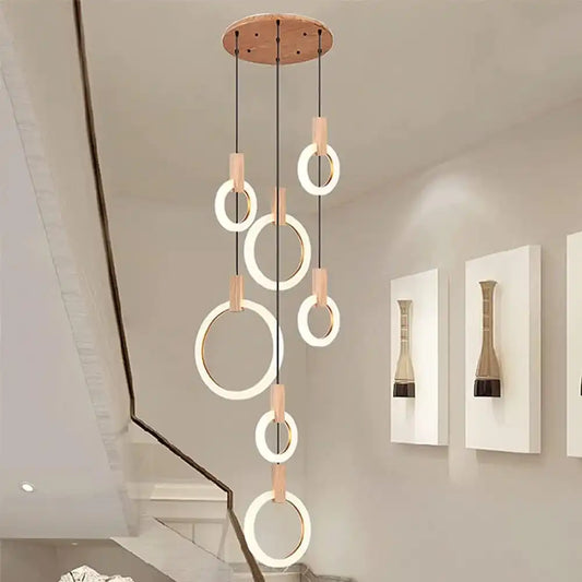 Hdc 10 Lights Modern Led Acrylic Rings Fixtures Warm Light Stair Chandelier