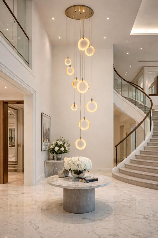 Hdc 48 Lights Luxury Multi-Drop Globe LED Chandelier Double-Height Living & Staircase Area