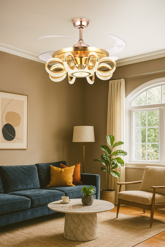 HDC Invisible Golden Rings Ceiling Fan Chandelier With Remote Control 4 Retractable Abs Blades - Tricolor