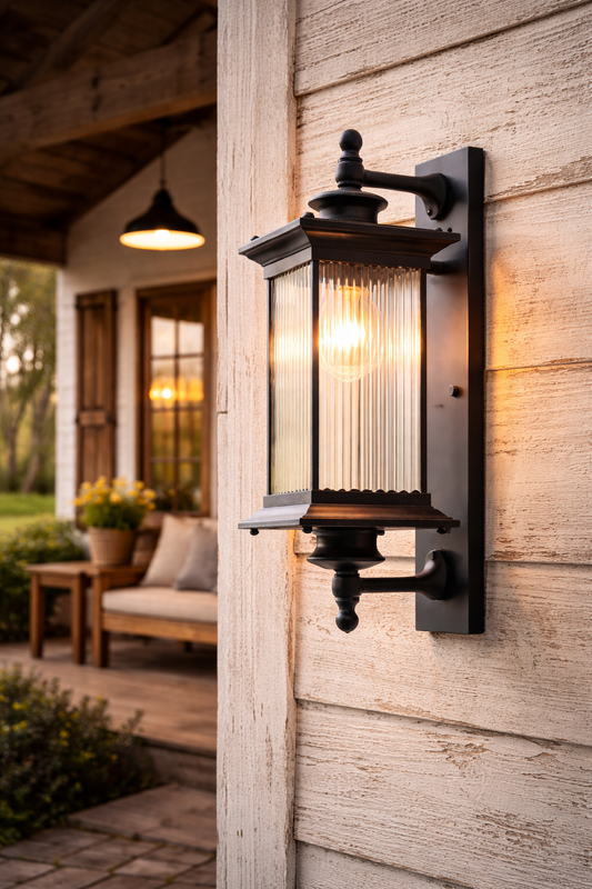 HDC Luxury Vintage Ribbed Glass Outdoor Wall Lantern