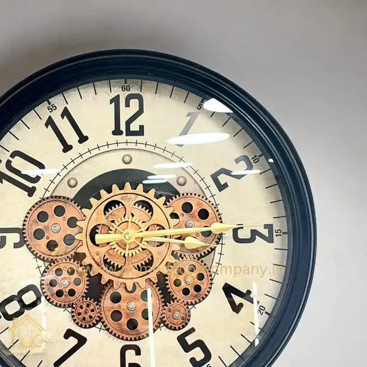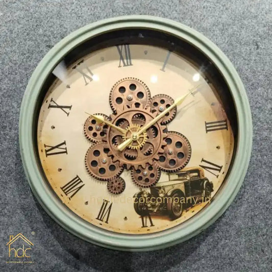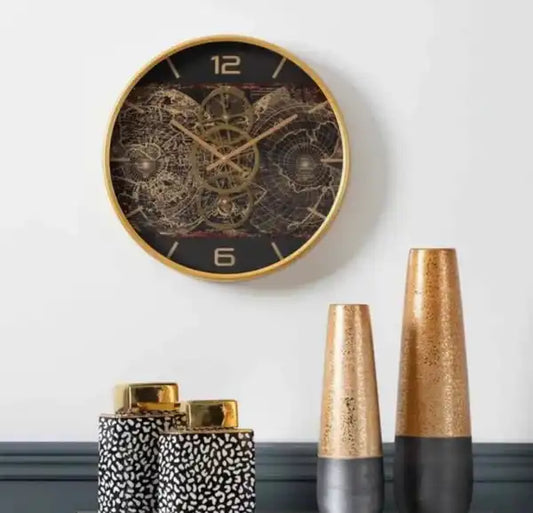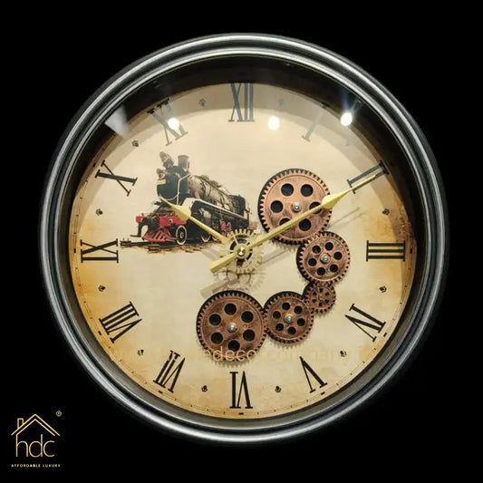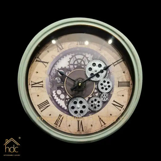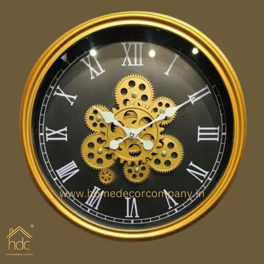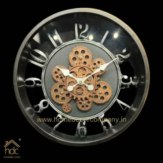 Hdc Time Lock Luxury Designer Wall Clock With Moving Gear Mechanism (Steel Body)