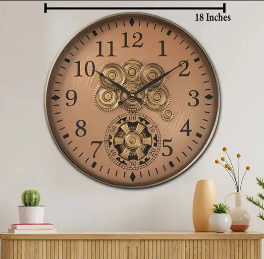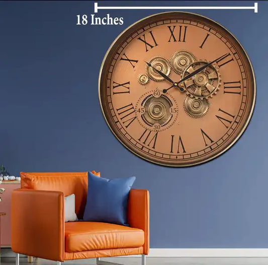 Hdc Whispering Wheel Luxury Designer Wall clock With Moving Gear Mechanism (Steel Body)