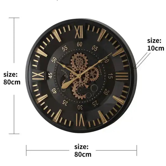 HDC Modern Black Gold Royal Metal Gear Mechanical Clock Style 43CM