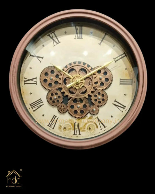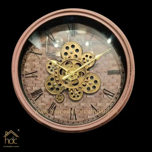 Hdc Opulence Tick Tock Luxury Wall Clock With Moving Gear Mechanism (Steel Body)