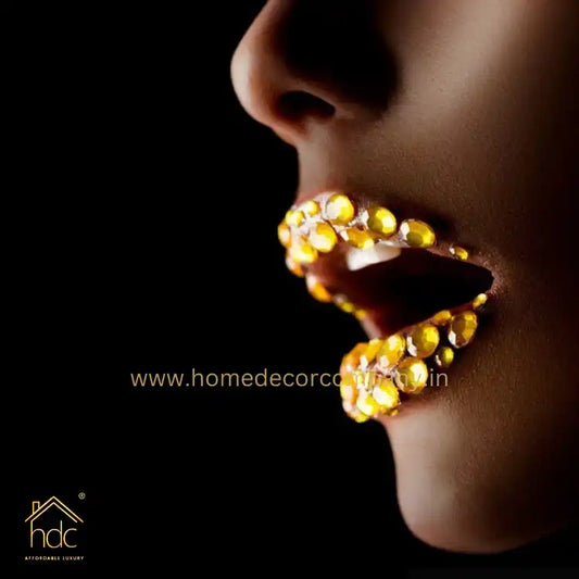 Hdc Golden Makeup Woman Lips with Gems Portraits Aesthetic Wall Art Poster for Living Room, Home & Wall Decor