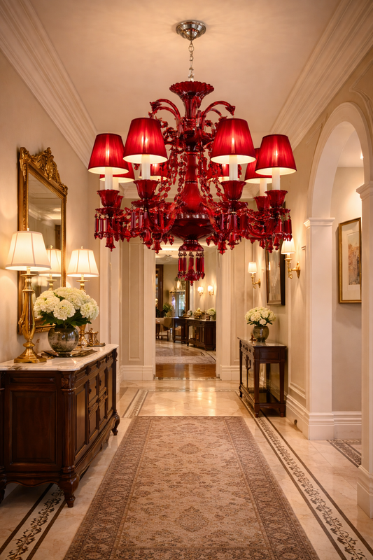 Hdc Luxury Red Crystal Glass Classic Italian Chandelier Ceiling Light for Living Room, Bedroom & Dining Area