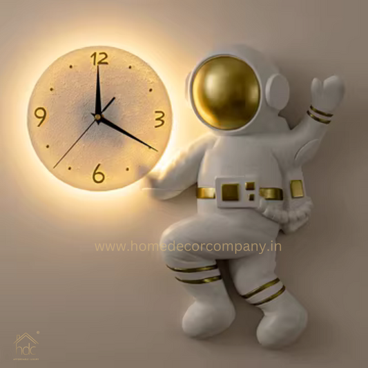 HDC Modern Astronaut-Themed LED Wall Lamp With Lightning Clock Resin Decorative Light for Kids Bedroom Living Room