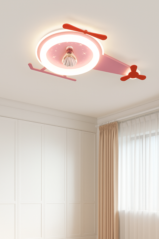 Hdc Helicopter Shaped LED Ceiling Light for Kids Room Pink Cute Aircraft Design with Doll Center | Decorative Flush Mount Light for Girls Bedroom, Nursery & Playroom