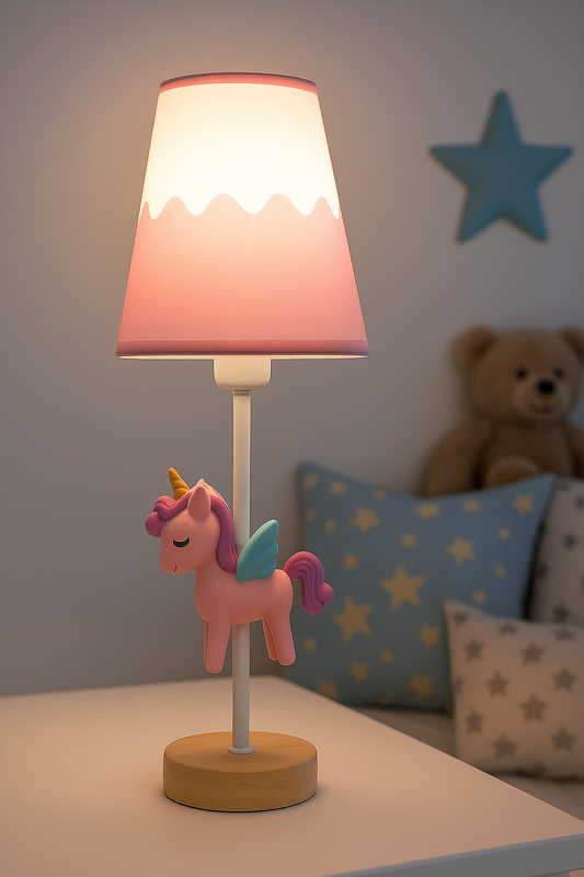 Hdc Unicorn Table Lamp for Kids – Cute Pink Night Light with Winged Unicorn & Wooden Base | Girls Room Bedside Lamp