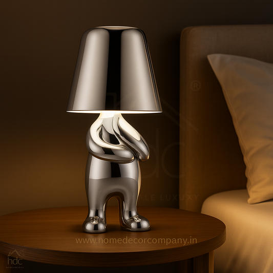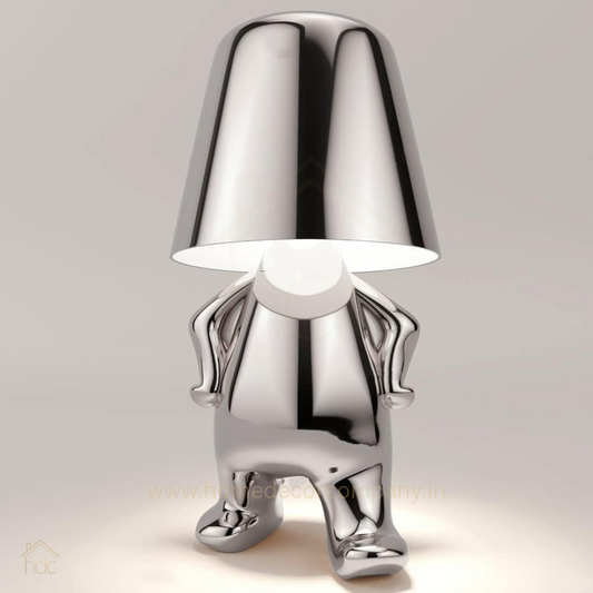 Hdc Nordic Golden/Silver Luxury Portable LED Desk Lamp Cafe Bar Restaurant Standing Stylish Little Golden Man Home Decoration Night Light