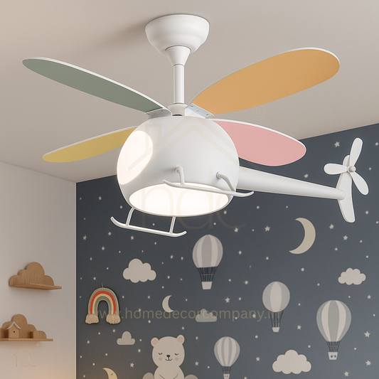 Hdc Kids’ Helicopter Ceiling Fan with LED Light Multi-Color Blades Airplane Chandelier