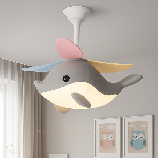 Hdc Kids’ Dolphin Ceiling Fan with LED Light Multi-Color Blades Fan Chandelier