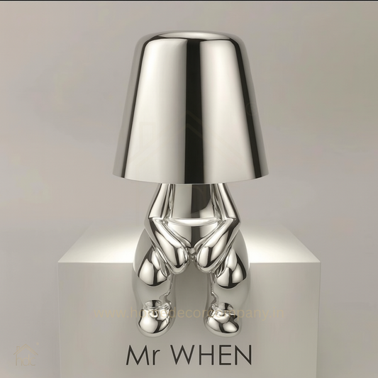 Hdc Little Golden/Silver Man Sitting With One Stretched Leg Stylish Nordic Golden Luxury Portable LED Desk Lamp Cafe Bar Restaurant Home Decoration Night Light