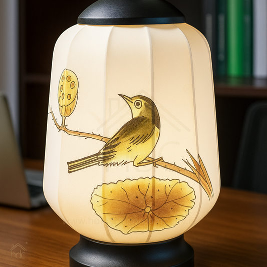 Hdc New Arrival Lantern Table Lamp Hand-painted Touch Retro Night Light Wood Linen Wireless Chinese Table Lamps
