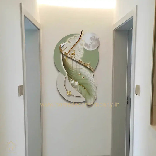Hdc Modern Light Luxury Twisted Feather Landscape Crystal Porcelain Modern Glass Wall Painting with Led Home Decor for Living Room