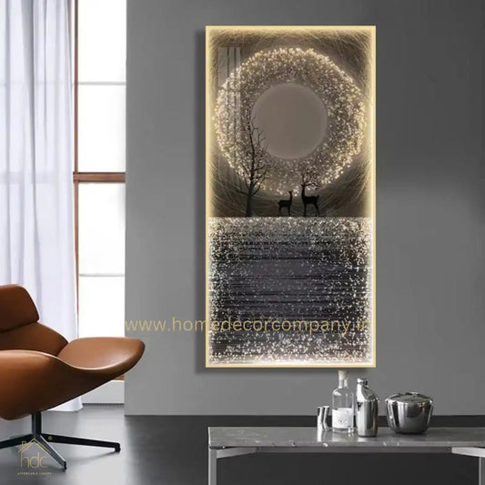 Hdc Custom Frame Home Decor HD Printed Canvas Of Swamp Deer with Moon LED Lights Luxury Modern Art Crystal Porcelain Led Wall Painting (24*48 IN)