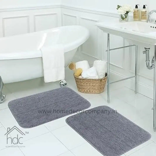 Hdc 40*60, 40*50 CM Modern Everyday Microfiber Anti Skid & Super Absorbent Ultra Soft Bathmat and Shaggy Floor Mats, Non-Slip, Rug for Home, Kitchen and Bathroom, 2 PC Set colour (Grey)