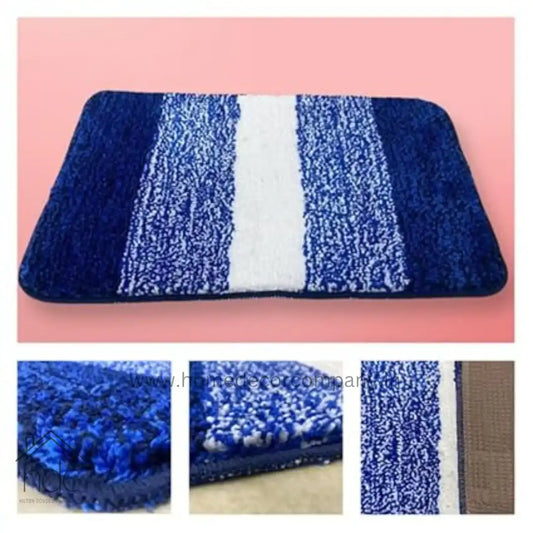 Hdc 40*60, 50*80 CM Striped Anti-Skid Rectangular Set of-1 Microfiber Bathmats for Home | Bathroom | Bedroom | Kitchen | Floor Mat (Blue)