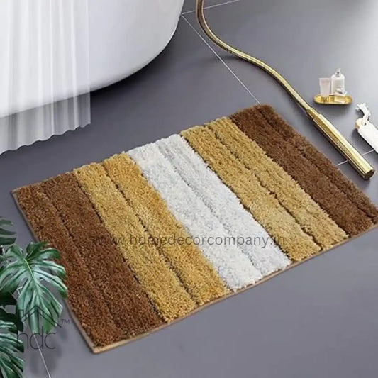 Hdc 40*60, 50*80 CM Striped Anti-Skid Rectangular Set of-1 Microfiber Bathmats for Home | Bathroom | Bedroom | Kitchen | Floor Mat (Beige)