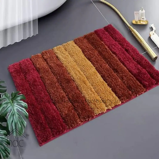 Hdc 40*60, 50*80 CM Striped Anti-Skid Rectangular Set of-1 Microfiber Bathmats for Home | Bathroom | Bedroom | Kitchen | Floor Mat (Red)
