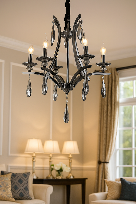 HDC 6-Light Luxe Pearl-Black Crystal Elegance Chandelier For Living Room