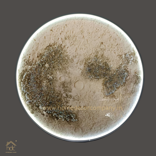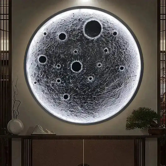 Hdc 800mm Modern Beautyful Round Moon Structure LED Crystal Painting for Home Decor Of Living Room Three-Dimensional LED Light Wall Art (Dia-32 IN)