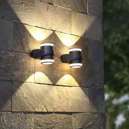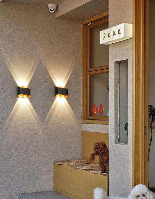 Hdc 2 Led Outdoor Black Gold Wall Lamp Up And Down Wall Light Waterproof (Warm White)