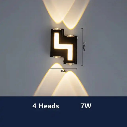 Hdc 7 Led Outdoor Black Wall Lamp Up And Down Wall Light Waterproof (Warm White)